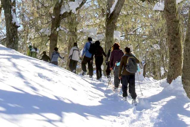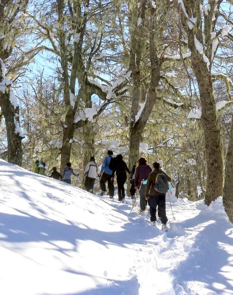 Se realiza en el Parque de nieve C4, recorriendo la montaña por un mágico bosque de lengas, durante 1.30 hs., llegando a los mejores puntos de fotos con vistas al Volcán Lanín.
