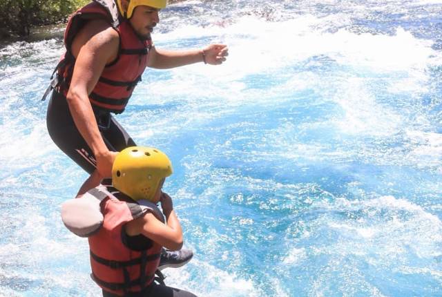 Durante los 12 km de recorrido, pasamos por 10 rápidos que garantizan emoción en un entorno controlado. Al llegar al lugar conocido como la Piedra del Viento podremos hacer un salto al agua para dejarnos llevar unos metros por las corrientes del río, nuevamente hasta la orilla. La bajada tiene una duración de entre 2,30 hs en el agua.
