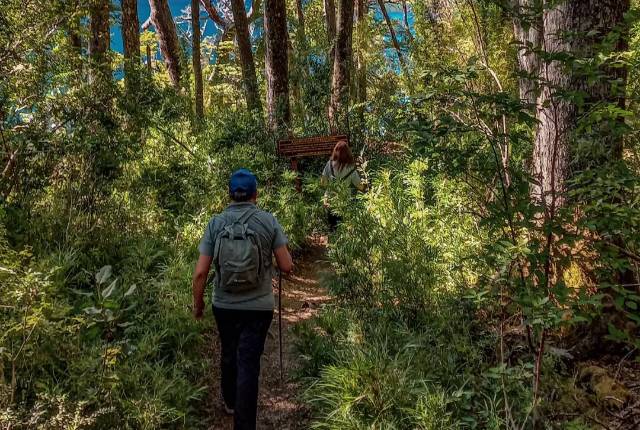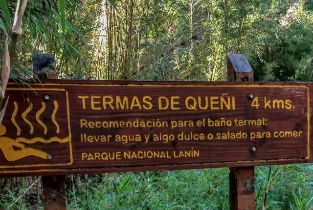 El sendero sale desde el camping del lago, es de muy fácil tránsito y no posee subidas ni bajadas abruptas. Sus bosques de Raulíes, Coihues, Pellines, caña Colihue nos rodean constantemente solo dejándonos ver el lago a nuestro lado. Una vez en las termas podremos disfrutar de un baño relajante en sus piletones, para luego volver a merendar al camping donde iniciamos la caminata.